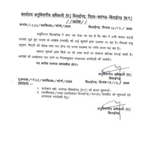 इन गंभीर परिणामों को देखते हुए प्रशासन ने पराली जलाने पर पूर्णतः प्रतिबंध लगाने का निर्णय लिया है। आदेश में स्पष्ट किया गया है कि यदि कोई कृषक इस आदेश की अवहेलना करता हुआ पाया जाता है, तो उसके विरुद्ध नियमानुसार दंडात्मक कार्रवाई की जाएगी। इसमें जुर्माना एवं अन्य कानूनी प्रावधानों के तहत कार्रवाई की जा सकती है।इस आदेश की प्रतिलिपि कलेक्टर,सारंगढ़-बिलाईगढ़ को सूचनार्थ भेजी गई है। साथ ही तहसीलदार एवं नायब तहसीलदार बिलाईगढ़, भटगांव एवं सरसींवा को अपने-अपने क्षेत्रों में निगरानी रखने एवं आवश्यक कार्रवाई सुनिश्चित करने के निर्देश दिए गए हैं।
